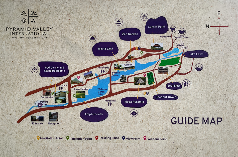 Spread across 40 acres, the campus is dotted with powerful energy spots, quiet spaces for reflection, and state-of-the-art halls for workshops and gatherings. Here, you’ll find the perfect balance of silence, learning, and transformation.